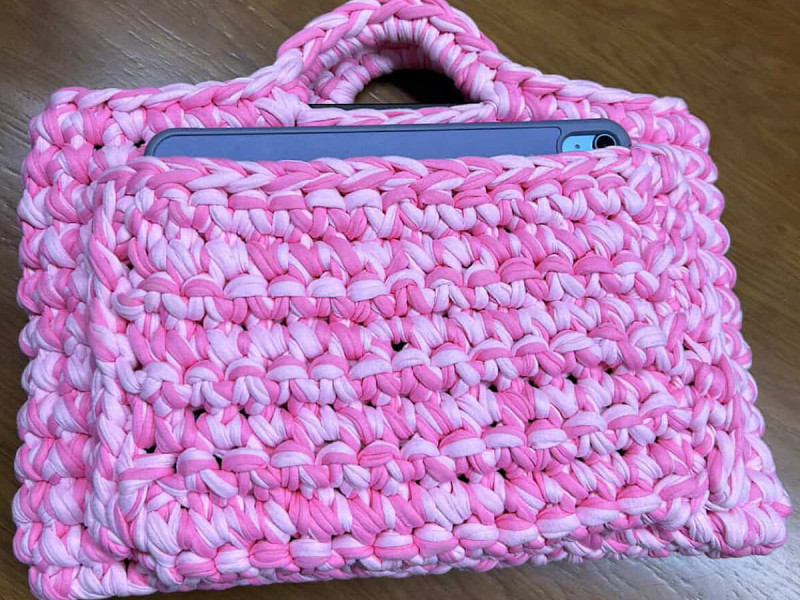شنطة يد مدورة بخيط لكليم مع سلسلة ذهبية